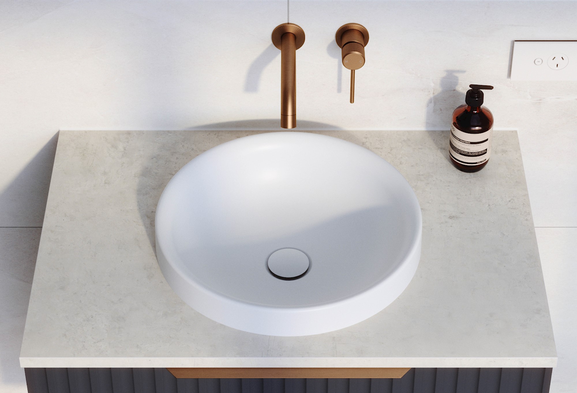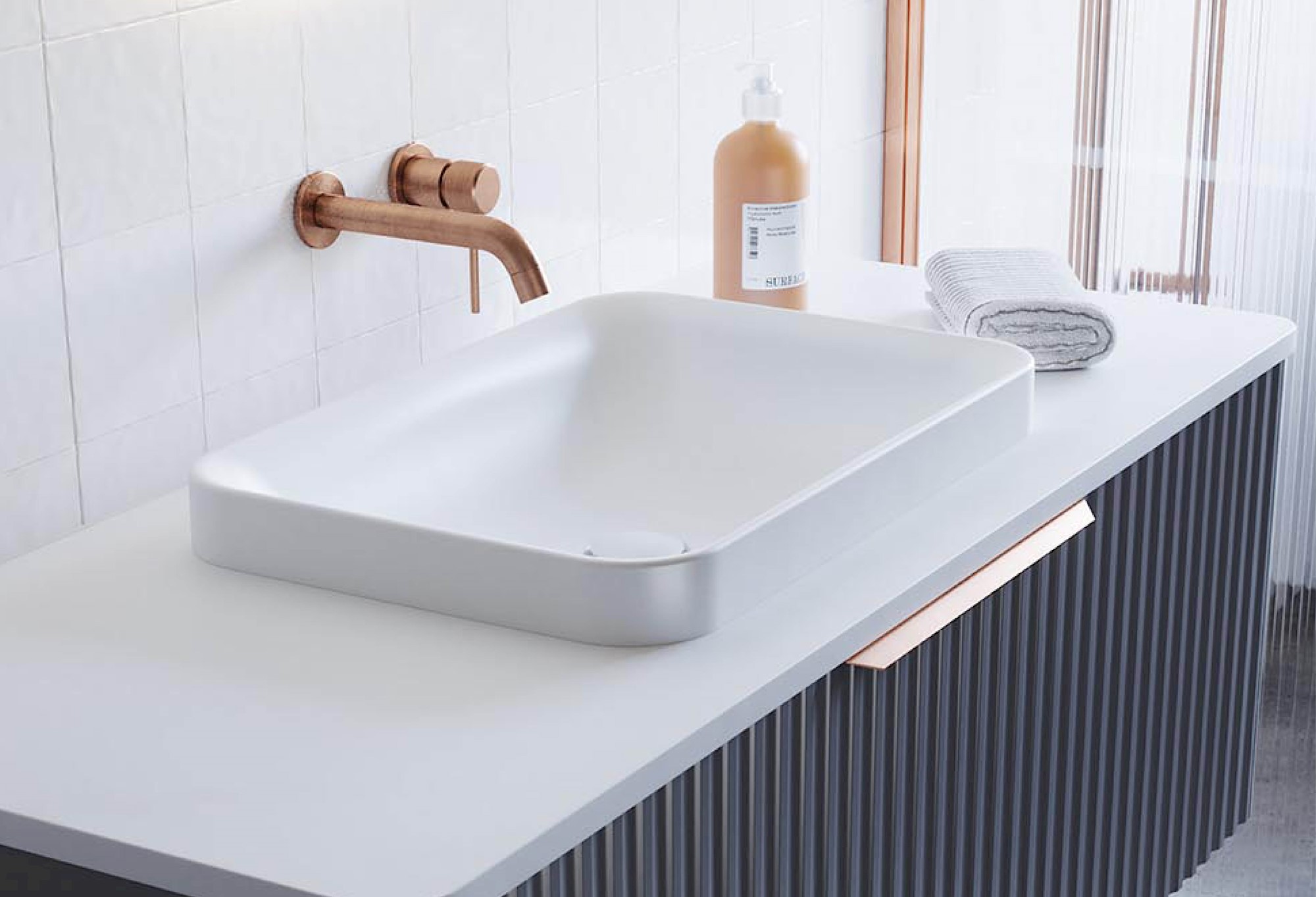 Our inset basins come in ceramic, mineral cast, and solid surface. Delivering durability and a premium seamless look.
