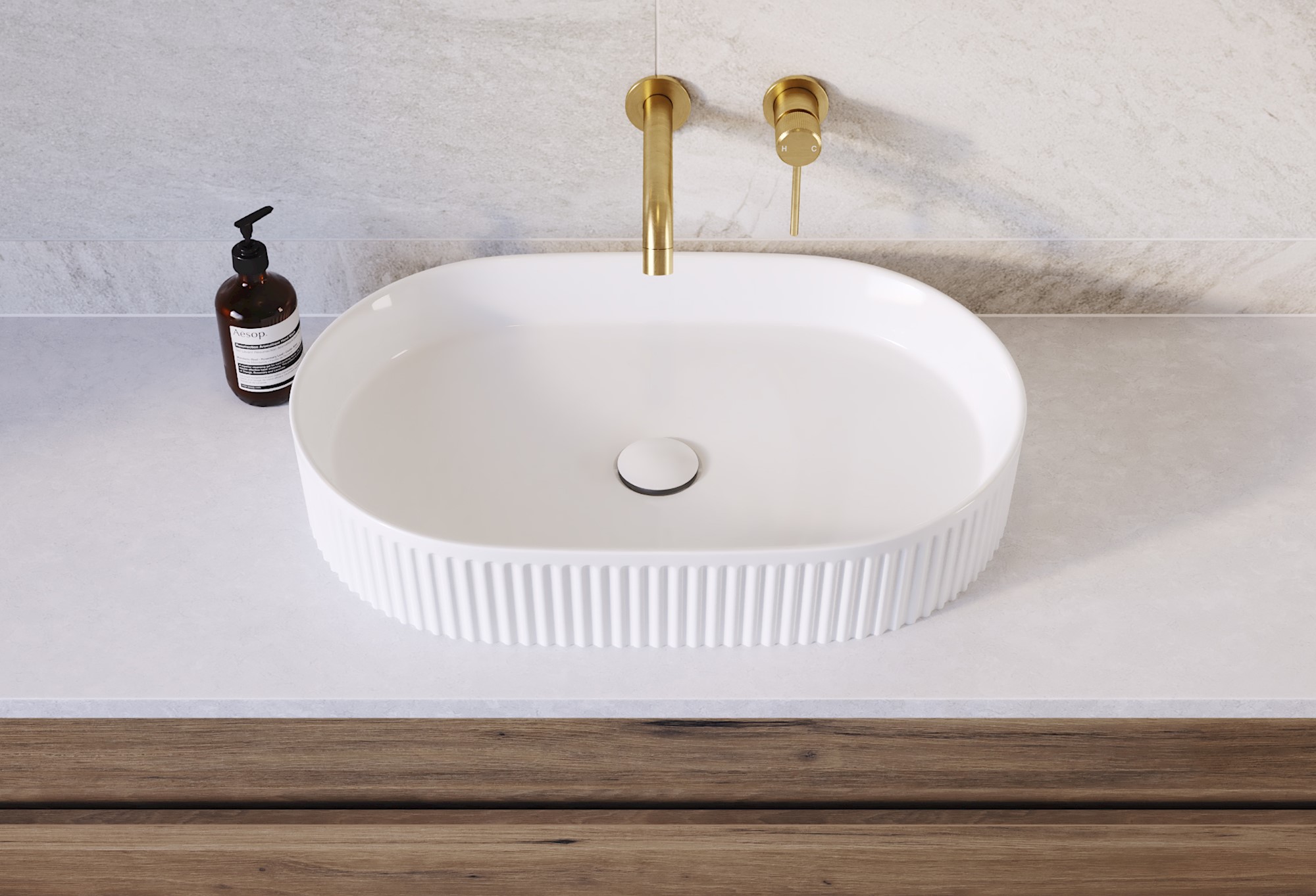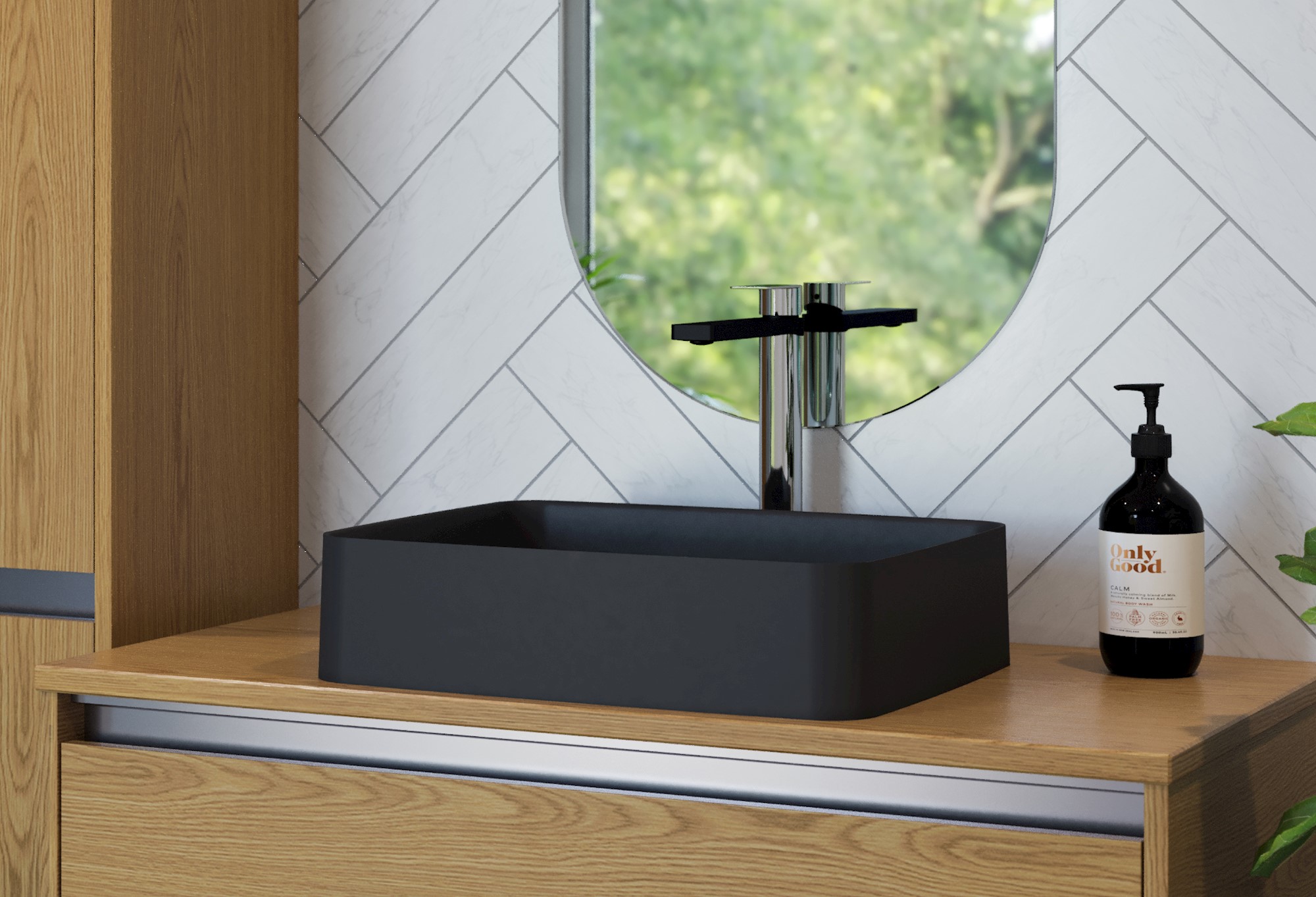 Vessel basins are mounted on top of the vanity and come in a range of materials and colours. There is a wide range of vessel basins available for our benchtop vanities, sourced from the Italian Galassia and Scarabeo brands, and the
