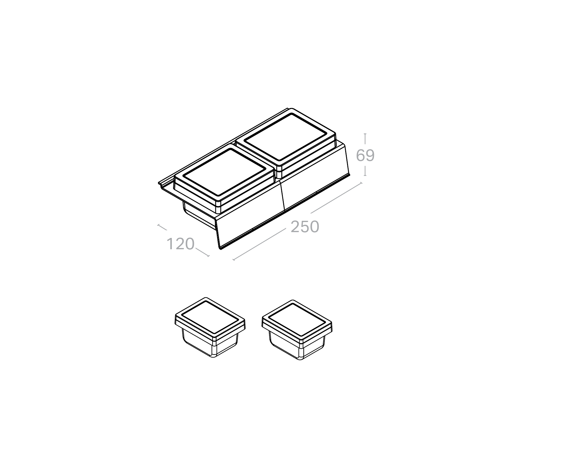250 wide x 69 high x 120 deep