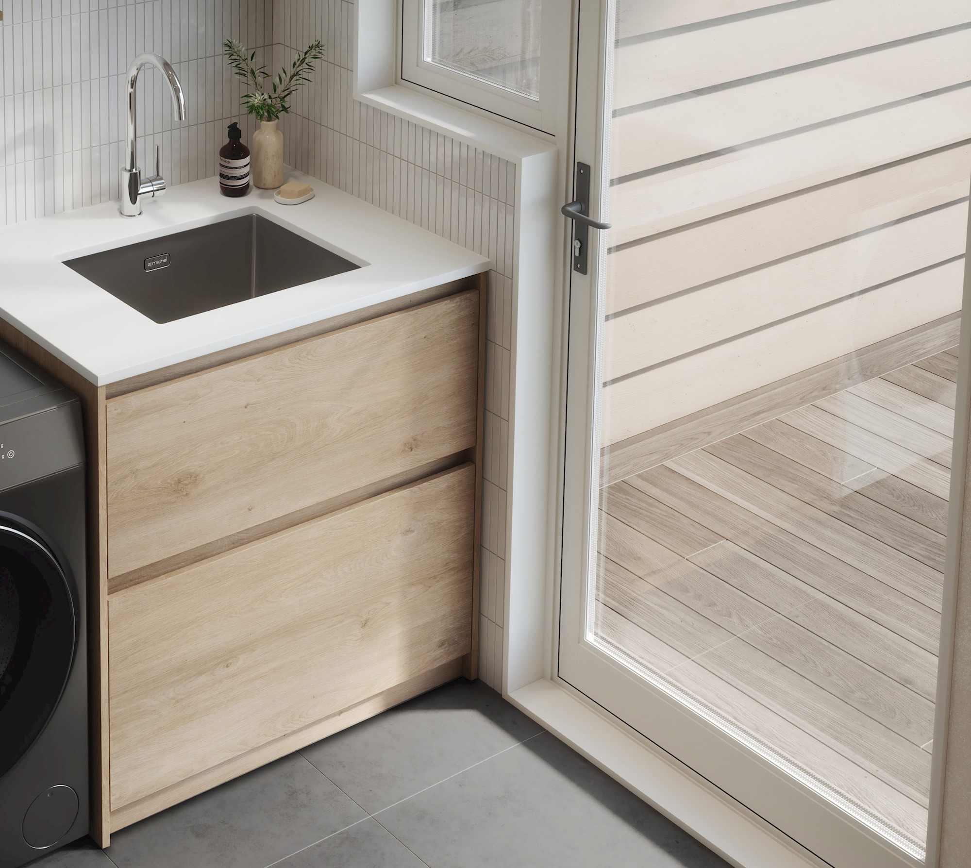 An all-inclusive solution, complete with cabinet, sink, and a WaterMark-certified